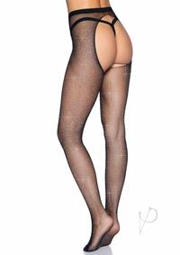 Rhinestone fishnet crotchless tights with cheeky open back.