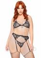 Leg Avenue Rhinestone Eyelash Lace Bra Top Garter Belt and G-String (3 pieces) – 1X/2X – Black