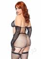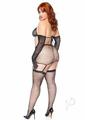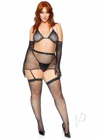 Leg Avenue Rhinestone Fishnet Garter Skirt Set with Bikini Top, G-String, Gloves and Matching Stockings (5 piece) – 1X/2X – Black