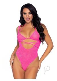 2 PC Rhinestone mesh wrap around bikini top and suspender bodysuit. O/S NEON PINK
