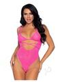 Leg Avenue Rhinestone Mesh Wrap Around Bikini Top and Suspender Bodysuit (2 Piece) – O/S – Pink