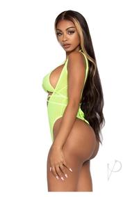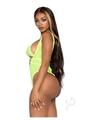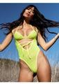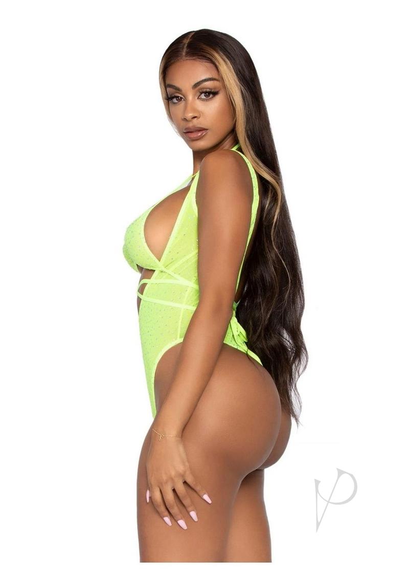 2 PC Rhinestone mesh wrap around bikini top and suspender bodysuit. O/S NEON YELLO