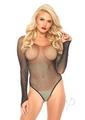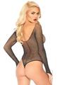 Leg Avenue Rhinestone Long Sleeve Fishnet Bodysuit with Snap Crotch – O/S – Black
