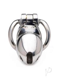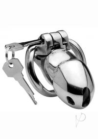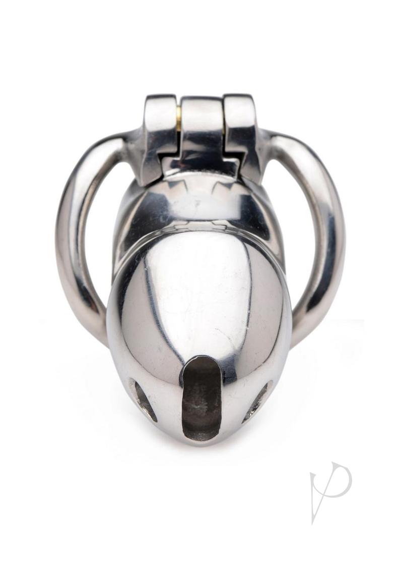 Keep your slave confined all day and all night! This chastity device has a uniquely compact design, with an internal locking system that prevents a bulky appearance under clothing. Insert the key into the brass keyhole and turn to straighten out the lock. The lock can then be inserted into or removed from the hinge. With another twist of the key, your slave will be helplessly trapped until you decide to show mercy! Great for sissification, cuckolding, and slaves. Made of stainless steel, this cage is non-porous and phthalate-free.Measurements:Base ring is 2 inches in diameter on the inside and 2.5 inches on the outside.Shaft is 3.25 inches in length and 1.3 inches in diameter on the inside.Material: Stainless Steel, Brass (lock).Color: Grey.Note: Includes internal lock and two keys.