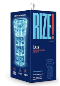 The RIZE! Luz is loaded with fun! This stroker is self-lubricating, just add a little water or saliva, and everything gets slippery. It also glows blue in the dark to add some excitement to your night! The Luz has soft ticklers for the ultimate feel and a ribbed inside for pressure point massage. Multiple chambers of suction create pleasurable stroking sensations. Super-soft and flexible, the Luz will fit any size shaft. It is free of phthalates, fragrances, paraffins, and latex.SELF-LUBRICATING – Just Add A Little Water or Saliva, And Everything Gets Slippery! Perfect For Pleasure On The Go!GLOW – Glows In The Dark! Easy To Find and Fun To Watch As You Play.PLEASURE – Snug Internal Ticklers and Chambers of Suction. Feels Incredibly Real And Provides Unparalleled PleasureULTRA SOFT and SQUISHY – Snug Fit and Squeezable So You Can Decide The Desired TightnessPEACE OF MIND – Responsibly Made By Blush Of TPE. We Care About Your Health And Wellness And Are Mindful Of What We Provide For Your Body. Lab Tested and Verified To Contain No Phthalates, BPA, Fragrances Or Other Unsafe Compounds In Compliance With Prop65 and REACH Product Safety Requirements. Silicone, Water Based and Hybrid Lube Safe. Never use with oil based products