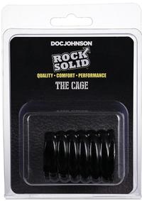 The unique elongated shape of The Cage helps maintain extra hard erections while adding extra girth. The ribbed texture adds enhanced stimulation for your partner. This TPE material allows for a light stretch to get it placed right. Rock Solid cock rings enhance size and thickness for longer, harder erections, and are completely body-safe.