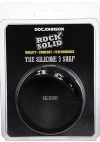 Rock Solid The Silicone 3-Snap Adjustable Cock Ring – Black