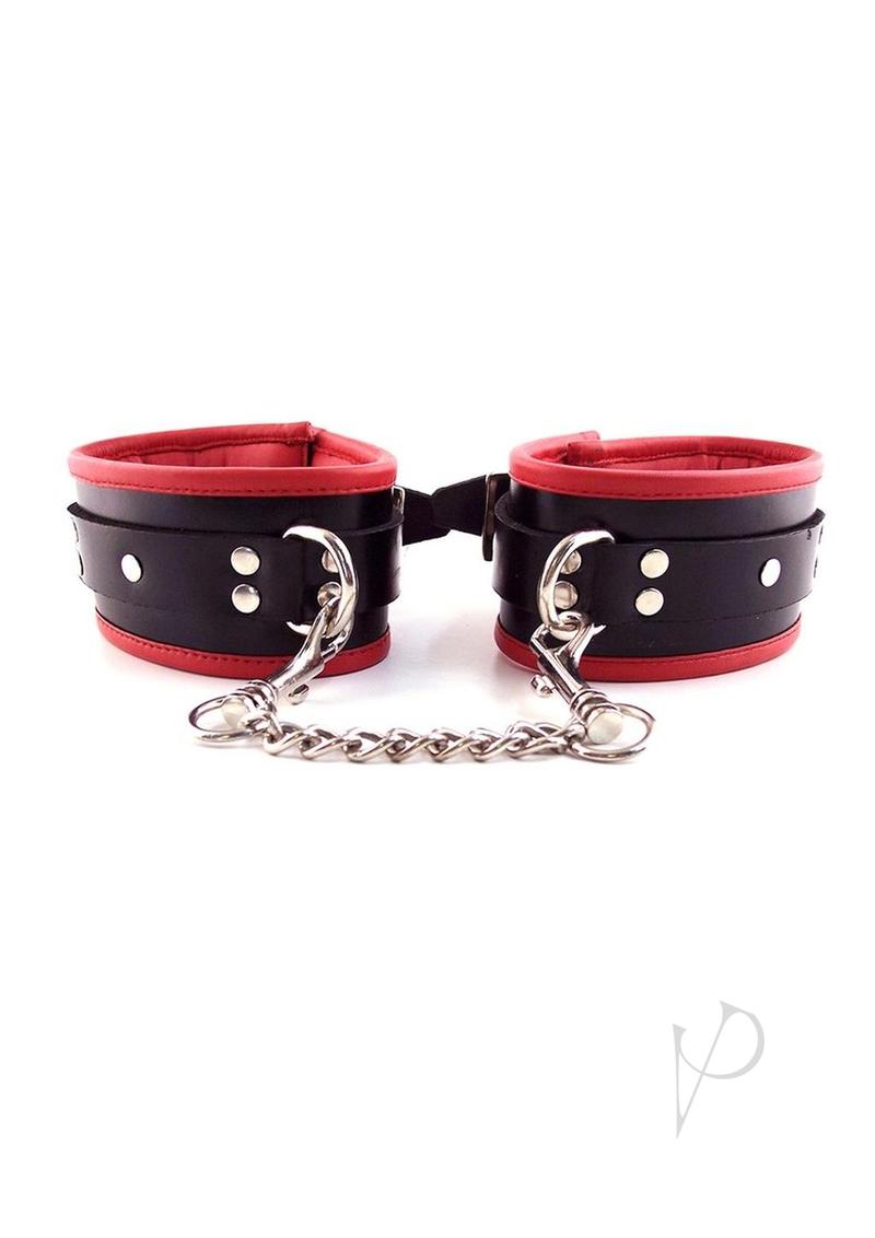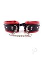 Leather ankle cuffs one D-ring and fully adjustable buckle straps. Padded and fully detachable trigger hook chain.
