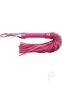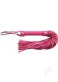 Leather flogger with shorter handle and leather hand loop.