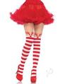 Rudolph reindeer opaque striped pantyhose w/sheer thigh high O/S RED/WHITE