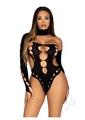 Leg Avenue Seamless Asymmetrical Cut Out Thong Back Bodysuit – O/S – Black