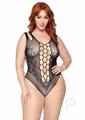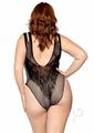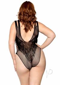 Leg Avenue Seamless Net Lace Bodysuit with Dual Shoulder Straps and Cheeky Cut Bottom – 1X/2X – Black
