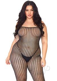 Leg Avenue Seamless Crochet Net Spaghetti Strap Bodystocking – Plus Size – Black