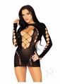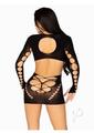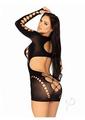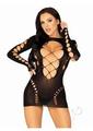 Leg Avenue Seamless Cut Out Long Sleeve Mini Dress with Faux Lace-Up Detail – O/S – Black