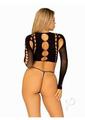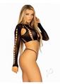 2 Pc Seamless Cut Out Long Sleeve Crop Top And G-String Panty. Black O/S