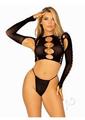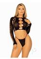 Leg Avenue Seamless Cut Out Long Sleeve Crop Top and G-String Panty – O/S – Black
