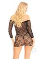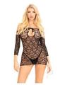 Leg Avenue Seamless Heart Net Mini Dress with Keyhole Tie Front – O/S – Black