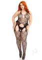 Seamless heart net suspender bodystocking. 1X-2X Black