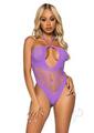 Leg Avenue Seamless Hexi Net Keyhole Halter Bodysuit – O/S – Lavender