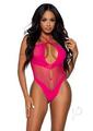 Leg Avenue Seamless Hexi Net Keyhole Halter Bodysuit – O/S – Raspberry