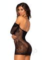 Leg Avenue Seamless Lace and Net Long Sleeved Mini Dress with Keyhole Twist Halter and Eyelet Trim – O/S – Black