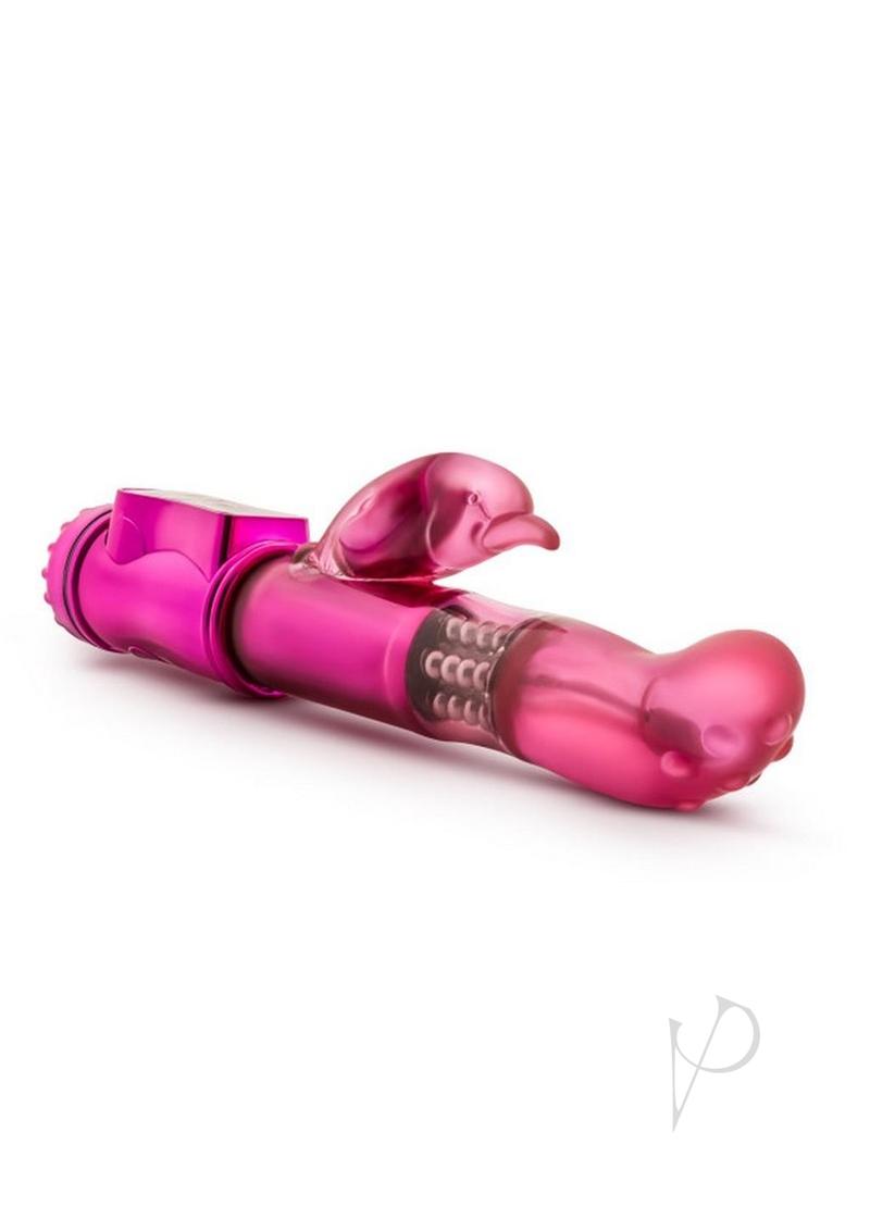 Ever Dance With Dolphin? Have a dance with our Dancing Dolphin! This is our favorite beginner`s dual stimulating vibrator. Petite in size with a little over 4 inches of soft gyrating shaft you will thrill at the pleasure the dolphin shaped clit stimulating vibrator. The shaft is also curved for perfect G Spot stimulation. The rotating pleasure beads rotates and reverses its rotation. It`s many patterns of rotating and vibratng will always keep The Dancing Dolphin new and refreshing. It`s like having a new lover each time! Clean shaft with soap and water taking care not to drench the controller as this product is only splashproof. Dry with clean cloth. Requires 4 AAA batteries. Not included. We recommend storing your toy in our Safe Sex Antibacterial Toy Bags