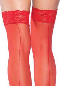 Sheer Stocking W/Back Seam Lace Top O/S RED