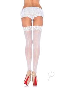 Sheer Stocking W/Back Seam Lace Top O/S White