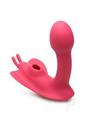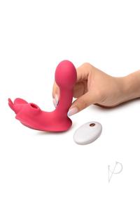 This vibrating and sucking clitoral stimulation toy will leave you with butterflies! Feel your heart flutter in excitement as you enjoy 10 sucking modes from the air stimulation technology gently teasing your clitoris. Insert the flexible shaft and feel the round tip press against your G-spot. Choose between 3 speeds and 7 patterns of vibration that buzzes through the shaft to your G-spot and clitoris for dual stimulation!Lubricate the toy with water based lube and enjoy slowly inserting as you play with different vibration patterns. The vibration can be felt throughout the shaft, the clit sucking end and the fluttering butterfly wings that tease and tantalize your labia. The premium silicone is body safe and IPX6 waterproofed so you can use it in the shower for or play with getting wet and slippery! Grind against the toy and feel the flexible shaft give way for your movement until you come to full satisfaction!After use, clean with warm water, soap and toy cleaner. Wipe clean with a soft cloth or let air dry. Store in a cool, dry place away from other silicone toys.Measurements:Overall length: 4.6 inches,Insertable length: 3.6 inches,Widest insertable diameter: 1.3 inches,Suction hole diameter: 0.5 inchesMaterials: Silicone, ABS PlasticColor: PinkKey Features:Dual Stimulation: Enjoy simultaneous clitoral and G-spot targeting stimulation! The round tip of the shaft vibrates and hits your G-spot while your clit enjoys suction and vibration!Suction and Vibration: The clitoral suction hole offers 10 sucking modes while the shaft and body buzzes with 3 speeds and 7 different vibration settings!Flexible Silicone Shaft: The premium silicone shaft can bend slightly for your comfort and pleasure as you move and grind.Waterproof and rechargeable: This toy is made with IPX6 waterproofing making it resistant to water and safe to use with water jets for up to 30 minutes. Do not submerge in water. Recharge using the USB cable provided.Note: Remote control distance up to 26ft, requires 1xCR2032 battery (included). Use only with water based lubricant.