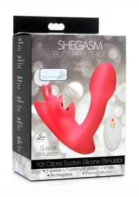 Shegasm Butterfy Tease Rechargeable Silicone 10X Clitoral Suction Stimulator with Remote Control – Pink