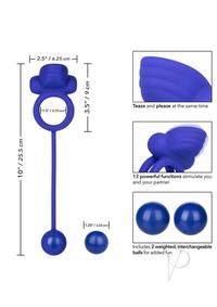 FEATURES:Stretchy and comfortable vibrating couples enhancer with dual support and tantalizing pleasure waves12 functions of vibration, pulsation and escalationEnhances stimulation for you and your partnerIncludes 2 weighted, interchangeable balls: 1.06 oz/30 g, 1.76 oz/50 gLuxurious body safe SiliconeState-of-the-art memory chip resumes on last function usedEasy push-button control hold for 3 seconds to turn on or offUSB rechargeable charging cord includedComplete charge in 1 hourRuns 70 minutes on high speed and 90 minutes on low speedDimensions:Enhancer: 3.5 x 2.5 in.Ring Diameter: 1.5 in.Balls Diameter: 1.25 in.Overall: 10 in.Package: 2 x 4 x 8.5 in.