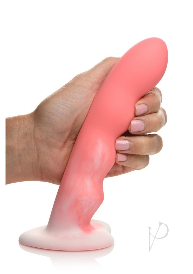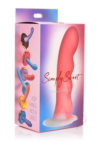 Ride the wave of pleasure with this Simply Sweet Wavy Silicone Dildo! The thick shaft has a slight curve to it and a wave pattern along the underbelly of the shaft. As you penetrate your most sensitive of holes, each wave acts as another penetrating bump to massage, stimulate and stretch you! The heart shaped base is wide enough for a strapon harness so you can enjoy partner play and pegging! Or use the suction cup base and ride it hands-free for solo, self-love sessions! Made out of premium silicone, it`s super soft and silky with a firm yet flexible core that allows you to get every angle and curve while still feeling the full, firm pressure of the dildo. Completely phthalate-free and body-safe, use it only with water-based lubricants for best results.Grab some lube and use it on your body where the dildo will enter and along the shaft itself. Start massaging the head in, letting it part your lips or stretch your hole. As you slowly work it deeper in, you can place the base on a flat surface to ride it hands-free! Or allow your partner to strap it on and they can assist you in getting even deeper! Use some toys or vibrators on other, erogenous, sensitive zones while you ride the dildo! Each wave gives an extra bump and stretch that massages your most sensitive spots! You`ll be dripping with the sweet honey of your arousal from these seductive sensations in no time!Curve Toys is known for their proprietary formulas used to create the best dildos and adult toys in the world. They manufacture their adult replica products with only body-friendly, phthalate-free, and top-grade materials. All products are inspected for superior functionality so that they represent the value, quality, and innovation from the factory to the bedroom. Staffed by experts with over 60 cumulative years in the adult manufacturing industry, Curve Toys is the perfect combination of passion, creativity and experience; in short, we know pleasure.Measurements:Overall length: 8 inches.Insertable length: 6.7 inches.Narrowest insertable diameter: 1.3 inches.Widest insertable diameter: 1.5 inches.Materials: Silicone Color: Pink, White Note: Use only with water-based lubricants.Key Features:Wavy Dildo: This long, wavy dildo has a thick shaft with waves that add bumps and curves as you ride it!Firm and Flexible: Delightfully firm so it fills you up, but flexible and bendy so it can handle any curve or angle.Premium Silicone: Made with premium, phthalate-free silicone so it`s body-safe! Use only with water-based lubricant.Wide Base: The wide, heart-shaped base is perfect for strapon harnesses and also doubles as a suction cup base for hands-free rides.