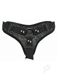 The velvety, fine lace fabric of this strap-on is part of the pleasure process as it comfortably hugs your contours while keeping your toy securely in place.