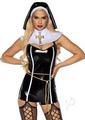 4 Pc Sinful Sister, Includes Vinyl Romper, Rope Belt, Collar, And Nun Habit. SMALL BLACK