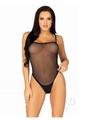 Snap Crotch Mesh Cami Bodysuit With Adjustable Straps And Thong Back. Black X-Large