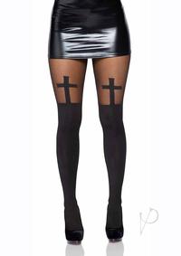 Leg Avenue Spandex Opaque Cross Pantyhose with Sheer Thigh Accent – O/S – Black