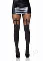 Spandex opaque cross pantyhose with sheer thigh accent O/S BLACK