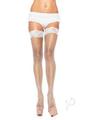 Leg Avenue Spandex Industrial Net Thigh Highs with Stay Up Silicone Lace Top – O/S – White