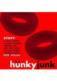 STIFFY 2-pack cockrings 2 non-roll grippy rings designed to be the right size c-ring for hunky big play.STIFFYandrsquo;S are shaped to grip you soft or hard, 2 firm-grip cockrings that will not rollandmdash;they flatten-out as you stretch, so they stay where you put them. No rolling=no pinch. STIFFYandrsquo;S grip tighter for maximum HUNKYNESS..Made of our softest, rubbery, incredibly stretchy PLUS+siliconeandhellip;the silicone gives a velvety feel and the TPR is stretch and strength.Handuuml;nkyjunk designs gear that fits your sex, cool styles and amazing rich colors.andbull; Right size for a more grip where you want, wont rollandbull; 2 rings peferct as a c-ring, shaft ring or ball ringandbull; Velvet finish PLUS+silicone material is strong and feels smoothAll original design copyright HUJ Industries/handuuml;nkyjunk toysPLUS+silicone is our own super-stretchy, mat finish strong blendandmdash;the right grip that doesnandrsquo;t pinch. Phthalate free and no scent.LUBE SAFE: Water-based lube, hybrid or silicone lube recommended. Oil-base lubes not recommended.CARE: Wash after use in warm soapy water, air dry. Store toys separately: we recommend storing in breathable cloth pouches or for larger toys, in cotton socks.Jointly Designed: USA/FINLAND by handuuml;nkyjunk and Made in ChinaSIZE/DIMENSIONS AND WEIGHT:STIFFYHeight: .75/19mmWidth: 2andrdquo;/50.8mmLength: 2andrdquo;/50.8mmOutside circumference: 6.5andrdquo;/165mmOutside diameter: 2andrdquo;/50.8mmInside circumference: 3andrdquo;/76.2mmInside diameter: 1andrdquo;/25.4mmWeight (single product only): .7 ounces/.02 kiloPACKAGING SIZE/DIMENSIONS+WEIGHT:Weight (product (2x) and packaging): 1.5 ounces/.04 kiloPackage Length: 6.75andrdquo;/172mmPackage Width: 4andrdquo;/102mmPackage Depth: .75andrdquo;/19mm**measurements are as accurate as possible, our liquid silicone toys are handmade so slight size variations can occur.