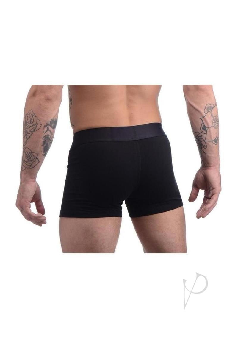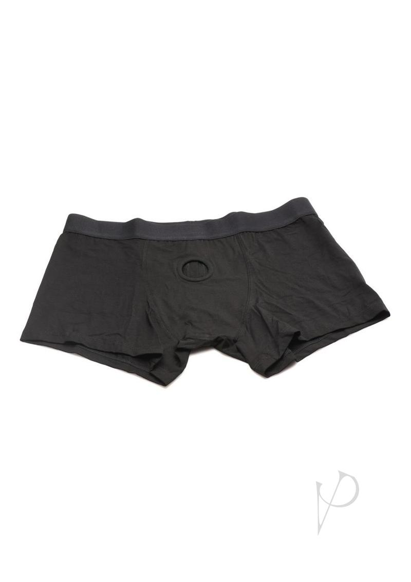 Wear your boxers under your garment and always feel confident, comfortable, and ready for a good time! The universal 1.6 inch O-ring is sewn into the cotton and spandex blend shorts. When you`re ready, you can simply slip the strap-on dildo of your choice into place when you`re ready for the main event! Until then, enjoy the comfortable and breathable fabric as you wear it beneath your clothes! The wide, supportive elastic band helps support the weight of your strap-on dildo and keeps the boxers from sagging. As an added bonus, care for your new harness is easy! Simply machine wash your boxers after each use on a cold cycle. To preserve the life and elasticity of the fabric, hand-wash and air-dry to avoid exposure to heat.Slip on your boxers underneath pants or a dress. The smooth material lays flat against your skin and doesn`t bulge or bunch beneath your clothing. Make sure you`ve tested out a strapon dildo with a wide base so you know it fits in the O-ring, then slip it into a backpack, bag or purse as you head out to your partner`s place. When you`re both ready, surprise them with your ready-to-go outfit! Use a compatible lube and let them play with the dildo and slip it inside. Then, slip the dildo into place and ride them!Measurements: 15 inches unstretched waistband diameter, fits 30 inch to 35 inch waist circumference. O-ring inner diameter is 1.6 inches.Materials: Cotton, Spandex, rubber Color: Black Note: Keep away from high heat or flame so the material does not melt. Key Features:Supportive Elastic Band: The wide elastic band helps support the weight of the dildo that`s placed in the front pocket.O-Ring Built In: This 1.6 inch universal O-ring can be seen on the front of the boxers and fits most strap-on dildos.Comfortable and Breathable: Wear these boxer style shorts as a comfortable and breathable harness underneath your clothing!Machine Washable: Easily clean your garment after wear by putting it in the washing machine. Hand-wash it for extra care if desired.