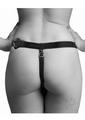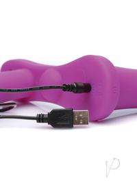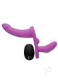 Get as much out of it as you put in! This double-ended dildo and harness set treats both of you to remote-controlled vibration. Explore 3 speeds of thrumming and 7 patterns of throbbing from the dual motors – one for you, and one for your partner. Place the longer dildo through the hole of the minimalistic harness, allowing the wearer to insert the smaller portion, which is curved to reach for the G-spot. A raised nub on the exterior is designed to provide clitoral stimulation. The longer dildo is also curved, and features a bulbous head to massage the receivers P-spot or G-spot. The remote control makes it easy to cycle through the 10 settings without having to pause penetration.The seductive harness as 2 points of adjustment to ensure a perfect fit. The double-sided dildo is made of premium silicone, making it non-porous and phthalate-free, but not compatible with silicone lubricants. This pleasure tool is rechargeable and waterproof. Clean with mild soap or toy cleaner.Measurements:10.75 inches in total length.Long dildo is 5.5 inches insertable length, 1.2 inches at narrowest diameter, 1.7 inches at widest point.Small dildo is 3.5 inches in length, 1.35 inches at widest diameter, 1 inch at narrowest. Harness fits waists up to 41 inches around.Material: Silicone, ABS, PU Leather, MetalColor: PurpleNote: Includes double dildo, remote control, and harness. Charges via USB. Remote requires 1 27A battery