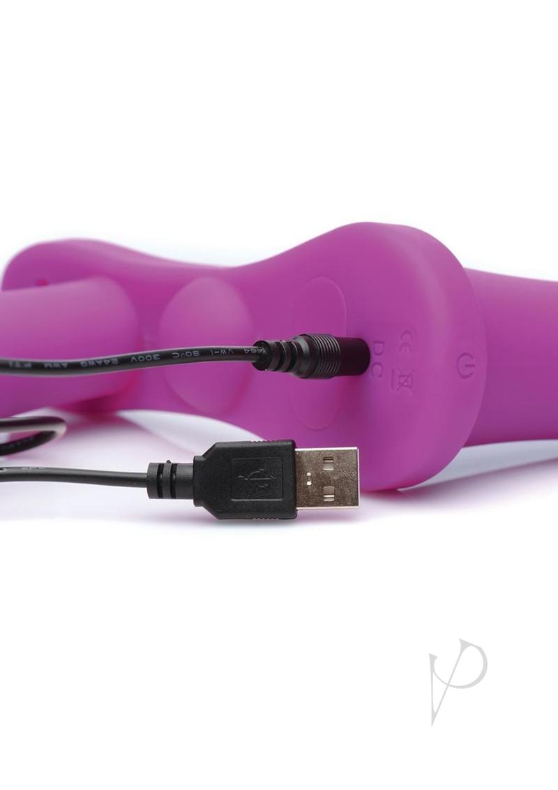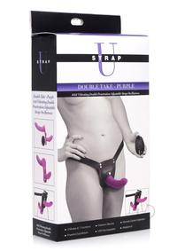 Strap U Double Take Double Penetration Rechargeable Silicone Vibrating Strap-on Harness – Purple