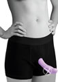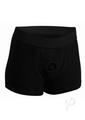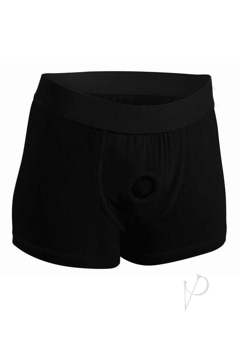 Feel more comfortable and stylish than ever before when you strap on your favorite dildo. This boxer brief style harness feels just like underwear, with an O-ring that stretches to accommodate most dildo sizes. You can even wear these cotton shorts out under your clothing, or stuff them with your favorite packer. This harness is excellent for extended wear. The supportive elastic waistband will carry the weight of your dong and you will be allowed greater mobility and position versatility. This harness is recommended for use with dildos that have a flat base that is 1.75 inches or wider. Machine washable.Measurements:Waistband measures 15 inches in diameter, unstretched.Legs of shorts are 10 inches in length, unstretched.O-ring is 1.5 inches in diameter, unstretched.Material:andnbsp;Cotton, Spandex, RubberColor:andnbsp;BlackNote:andnbsp;Dildo not included.