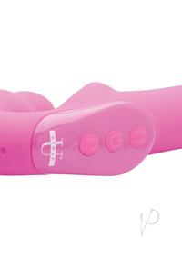 The first strapless strap-on with a remote control in the world, this couples toy provides more convenient vibrating pleasure during pegging or penetration that does not involve a penis. The shape allows one partner to insert the smaller end vaginally, holding it with their Kegel muscles or adding a harness for extra support. A pad with ridges provides clitoral bliss as they grind against it. Meanwhile, every thrust will send the long, smooth shaft into their partner. The curves on both ends target the G-spot or P-spot for direct stimulation. Independent dual motors are easily controlled via the panel on the front of the Urge, or with the handy remote control! Explore 3 speeds of buzzing and 5 patterns of pulsation for each partner. It is even waterproof for wet, hot fun in the bath, shower, or pool. Made of premium silicone, the Urge is non-porous, phthalate-free, and thoroughly sanitized with mild soap and warm water. Preserve the material by avoiding use with silicone lubricant.Measurements:9.5 inches in total length.Vaginal bulb is 4 inches insertable length, 1.5 inches at widest diameter.Shaft is 6 inches insertable length, 1.65 at widest diameter.Material: Silicone, ABS PlasticColor: PinkNote: Instructions included. Charges via USB. Remote requires 1-CR2032 cell battery, included.