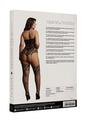 Strapless teddy with striped design and attached stockings with a backseam. The teddy is crotchless and fits size XXL to 5XL. Thong not included.