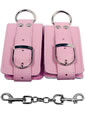 Lined with plush fur, these quality leather cuffs are durable and comfortable. Tethered with an easy-snap chain and adjustable straps. Strapped cuffs become a fantasy you want to get into.