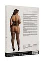 Bodystocking with open cups and a strappy, halter neckline. The attached matching stockings have a backseam. This bodystockings fits size XXL to 5XL. Thong not included.