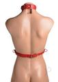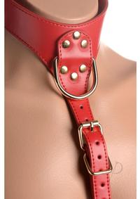 Show off your gorgeous body and share your flair for kink with this chest harness! The top of the harness wraps around the neck to serve as a collar then comes down between the breasts to split off and wrap around to the back. The harness accentuates and complements the shape of each breast and has a halter-top look from behind. Each long strap has many holes in it so you can place the prongs through them to adjust for a perfect size! With buckle closures you have a comfortable yet secure fit. The harness adjusts from the neck to the center of the body, around the neck, and along each side of the ribs. There are two large D-rings at the top and the bottom of the harness on the front and two small D-rings on either side along the ribs. These can be used to attach leashes or other accessories and bondage implements to. Made of durable vegan leather, it`s perfect for every type of body and preference. Plus, it looks incredibly sexy with or without clothing and can be used to accessorize any kinky outfit! All metal is nickel-free. Spot clean as needed. Avoid exposure to oils and use only water-based lubricants while wearing during a play session for best results.This sexy harness looks great on soft, silky t-shirts and dresses, against latex clothing, or on bare skin! Show off the shape of your breasts and the elegant arch of your back with this halter-style harness. Surprise your partner with this sexy ensemble and pair it with some kinky games tonight! Or be daring and wear it over a dress or form-fitting shirt and pants at an outing!Measurements:Collar adjusts from 10 inches to 13.5 inches circumference. Chest strap adjusts from 10.5 inches to 13.75 inches in length. Underbust strap adjusts from 23 inches to 33 inches circumference.Materials: PU Leather, MetalColor: Red, MetalKey Features:Durable Vegan Leather: This durable, sexy, vegan leather is perfect for all body-types and lovers. Lost long and looks great!Four D-Rings: There are two large D-rings on the front; one beneath the collar and at the junction of the ribs between the breasts. The other two smaller ones are one either side of their chest. Use these to attach leashes, chains or accessories.Nickel-Free Metal: All metal used is nickel-free.Buckle Closures and Adjustable Straps: Adjust for a perfect fit! The straps have many holes for the prong to go through and are secured via buckles.