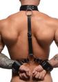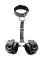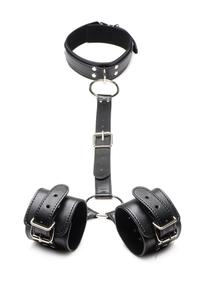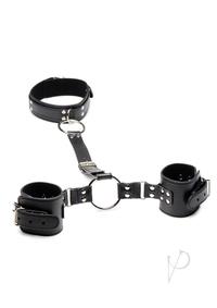 Strap in your submissive with these Neck to Wrist restraints! Doubling as a collar, the soft inner lining is gentle against their skin so you can cinch up the collar and wrist cuffs as tight as is comfortable. The vegan-friendly PU leather is easy to clean and still maintains the sexy, classic leather look! The large O-rings are made of strong, nickel-free metal and can have other bondage items attached to them. Use the buckle to adjust to the perfect fit.Hook your fingers around the O-rings and tug your lover towards you. Play with attaching the O-rings to different anchor points or place their hands far away from them. Their wrists will be cuffed and restrained, the center strap attached to their collared neck. Keep the center strap short to keep their hands just out of reach of their genitals so they can`t play with themselves, and enjoy teasing and toying with them. Limit their movement even more by bringing the strap around to the back and placing their restrained wrists behind their back.After you`re done playing, use a toy cleaner and spray the straps and metal clean then wipe clean with a soft cloth. Store in a cool, dark place away from any sharp or rough material.Measurements:Collar strap width: 1.5 inches, collar adjusts from 12.5 inches to 16.5 inches circumference,Cuffs strap width: 2.5 inches, cuffs adjust from 7.5 inches to 10 inches circumferenceBack strap adjusts from 10.5 inches to 16.5 inches in lengthMaterials: PU Leather, MetalColor: Black, MetalKey Features:PU Leather: This vegan-friendly leather is easy to clean and still has the classic, sexy leather style!Large O-Rings: Get attached to this design with O-rings that can easily be attached to other bondage items.Buckled Up and Adjustable: The collar and wrist cuffs cinch closed and buckle up so you can find the perfect fit for comfort and restraint. The wrist cuffs can be unbuckled and reattached either in front or in back for multiple restraining positions.Soft Inner Lining: Enjoy the feeling of this against your skin. The soft inner lining makes wearing this tight against your body comfortable and sexy!