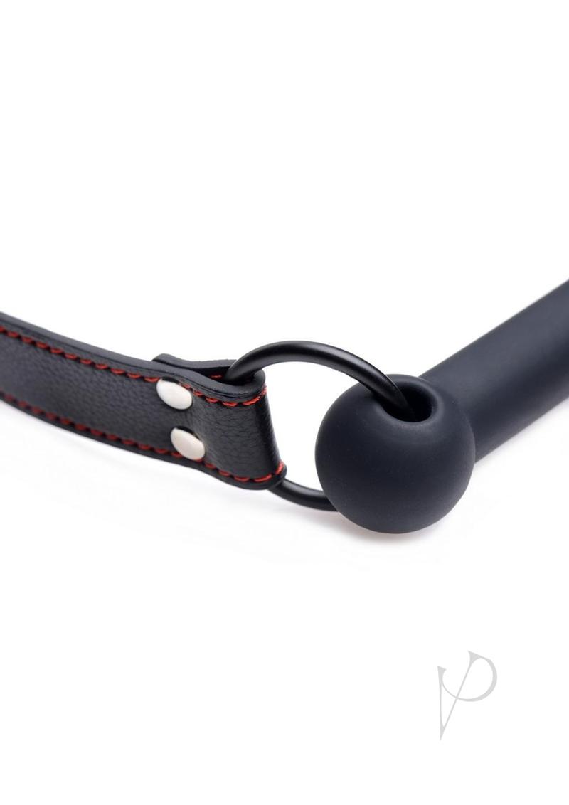 Strap your pet into this attractive and comfortable bit gag to subdue them during your play sessions. With a classic design and bold red stitching against the leather-like material, the sheer appearance of this accessory will get you both excited for whats to come. The adjustable strap easily secures where the head meets the neck. The high grade silicone is durable, as well as non-porous and phthalate-free for a body-safe experience. Enjoy every muffled moan from that dripping wet mouth when your plaything wears this beautiful bit gag!Measurements:Gag portion is .75 inches in diameter, 3 inches in length.Strap adjusts from 16.5 to 23.5 inches in circumference.Material: Silicone, PU Leather, Metal.Color: Black
